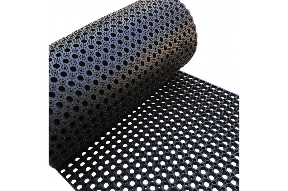 Najlepsze rozwiązanie na wycieraczkę pierwszego kontaktu. Idealnie zbiera z obuwia śnieg, piach czy błoto. Dzięki dużej masie własnej i antypoślizgowym wypustkom jest bardzo stabilna. Wycieraczka wykonana jest w 100 % z gumy dzięki czemu jest odporna na warunki atmosferyczne. Dostępna w rolce o szer. 100 cm.