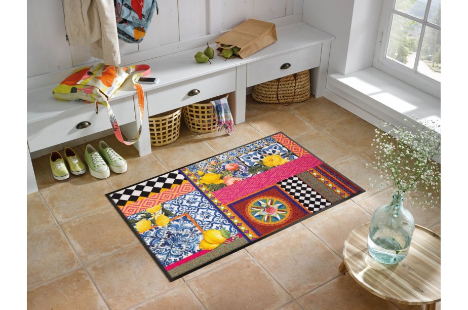 Wyjątkowe maty dekoracyjne o zastosowaniu mieszkaniowym, posiadające wiele zalet użytkowych. Włókno wykonane w 100% z poliamidu ma większą zdolność do zatrzymywania brudu i wilgoci w stosunku do polipropylenowych mat. Wycieraczki wykonane są na podłożu z gumy nitrylowej dzięki czemu nie przesuwają się po podłodze oraz nadają się do prania w pralce.