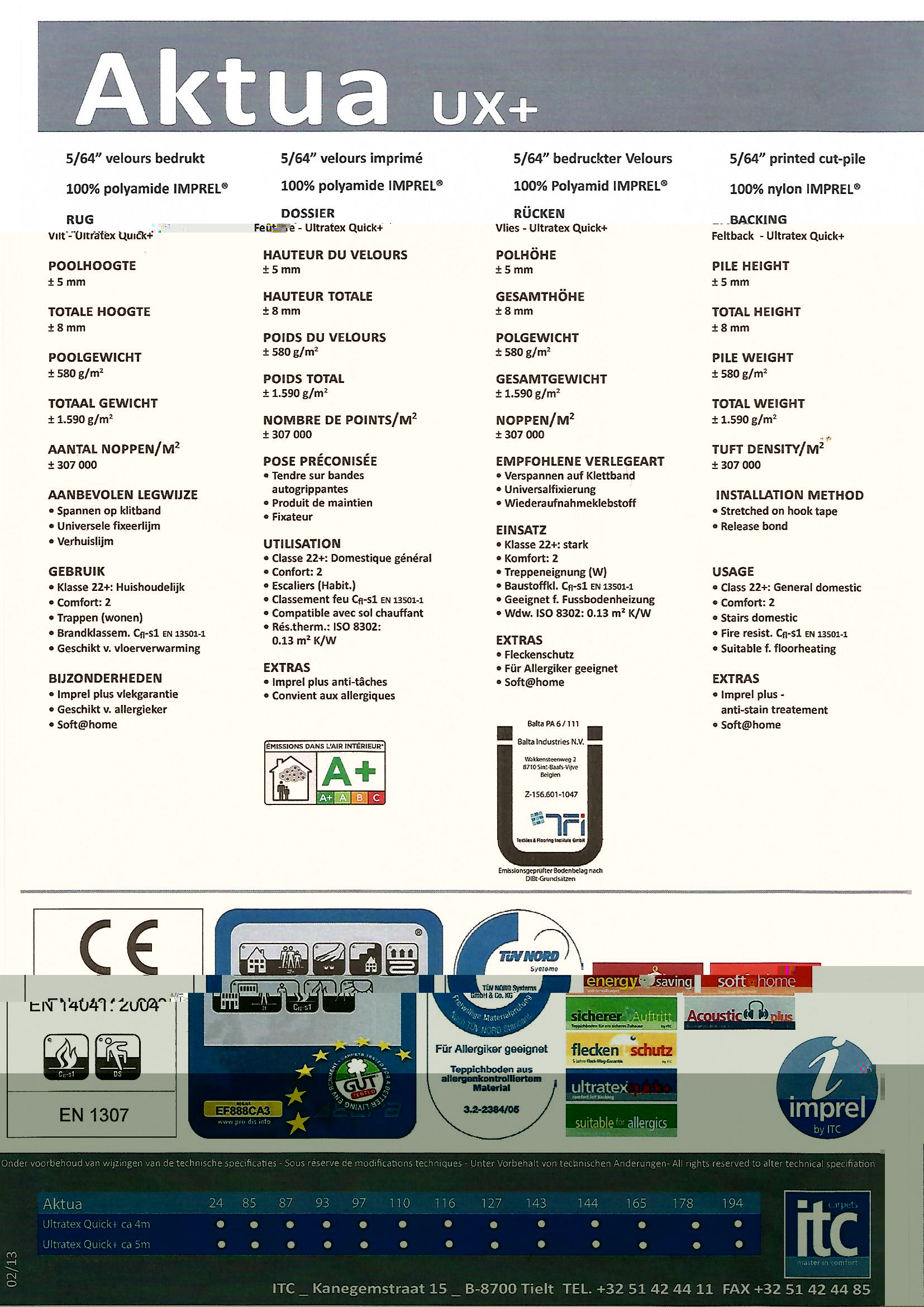 | Skład surowcowy włókna | 100% PA imprel | |